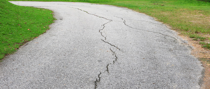 Bigger cracks will eventually require repaving. Make sure your driveway is graded to prevent standing water puddles.